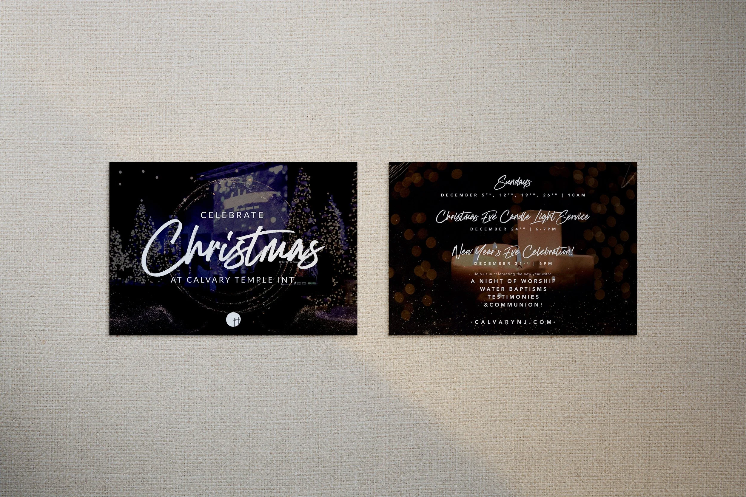 With Calvary Temple International being a religious organization, the holiday season is a busy time requiring a lot of media. I designed and helped produce three different postcards that would be used as a means to help create a more personable approach when inviting congregants to join them during the Christmas Season.