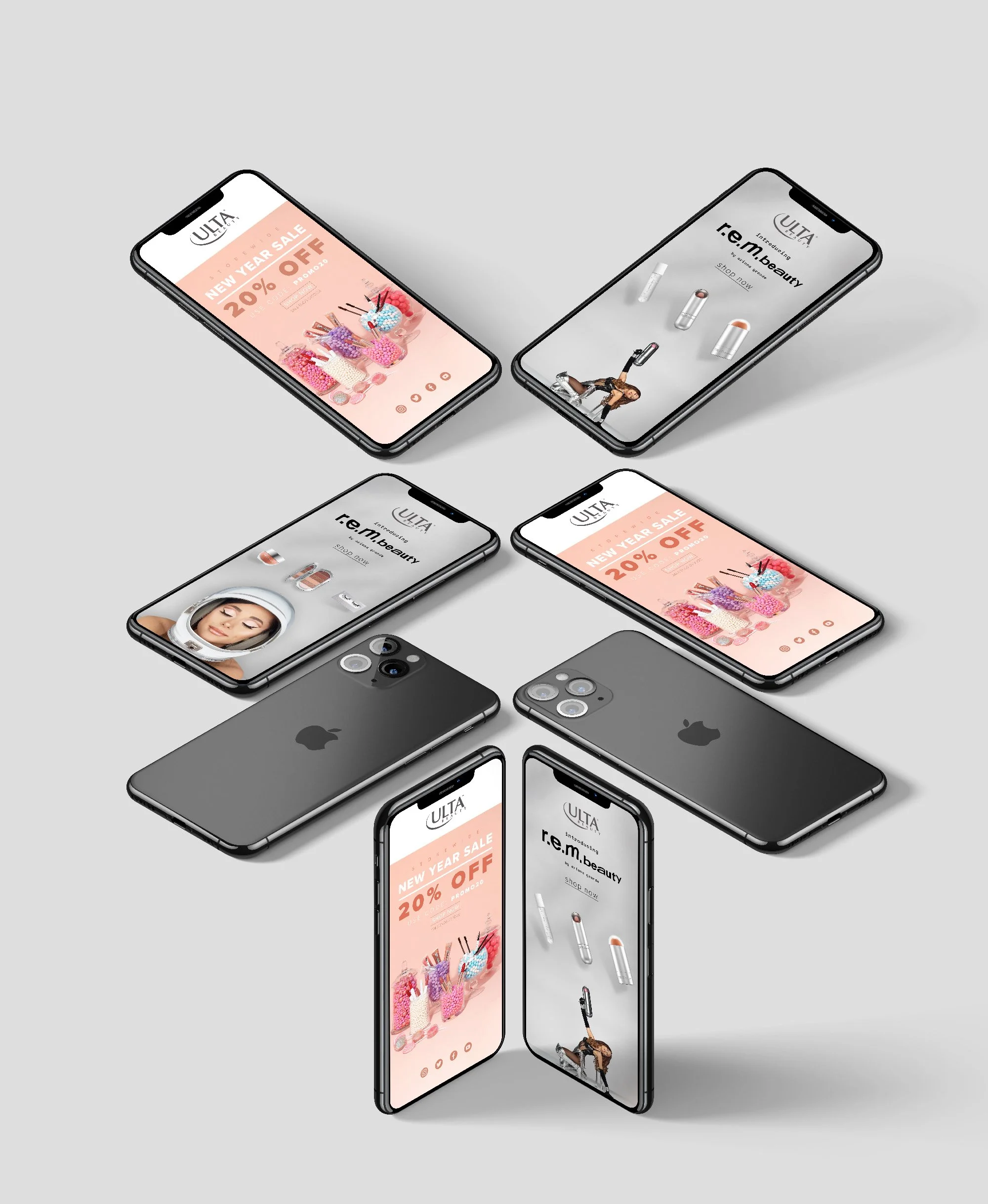 Ulta Beauty is large cosmetic retailer that is constantly looking to connect with customers and promote new product! I was able to provide spec art for a generic email campaign the would promote a new year sale. I also was able to provide spec art to help promote a new product launch where Ulta Beauty partnered with REM Beauty by Ariana Grande.